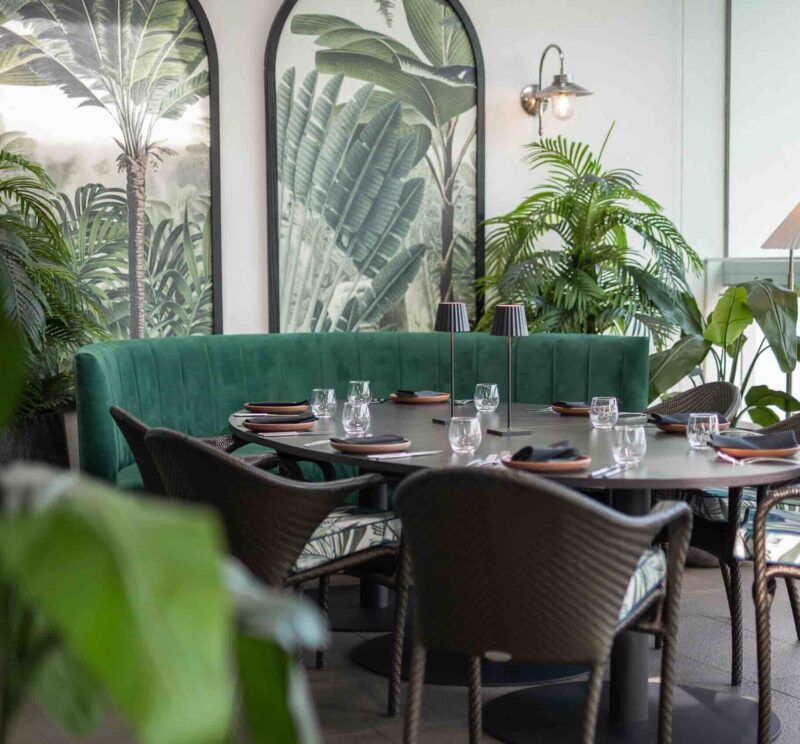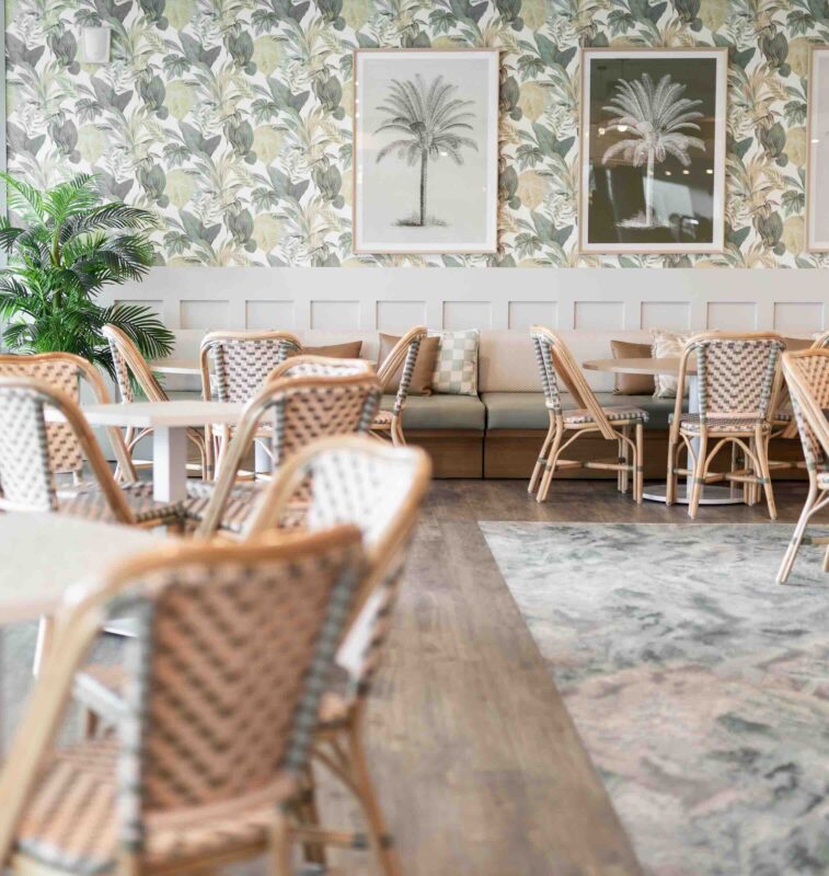 The resort’s dining experience has also been elevated with the reopening of Barretts, its signature restaurant. The space boasts deeper tones compared to the other parts of the resort, to create an intimate, luxurious dining experience. Textures and materiality include velvets, brass, deep woodgrains and lush greenery combined with rich textured tropical wallpaper and prints, giving the renovated restaurant a sense of whimsical opulence.