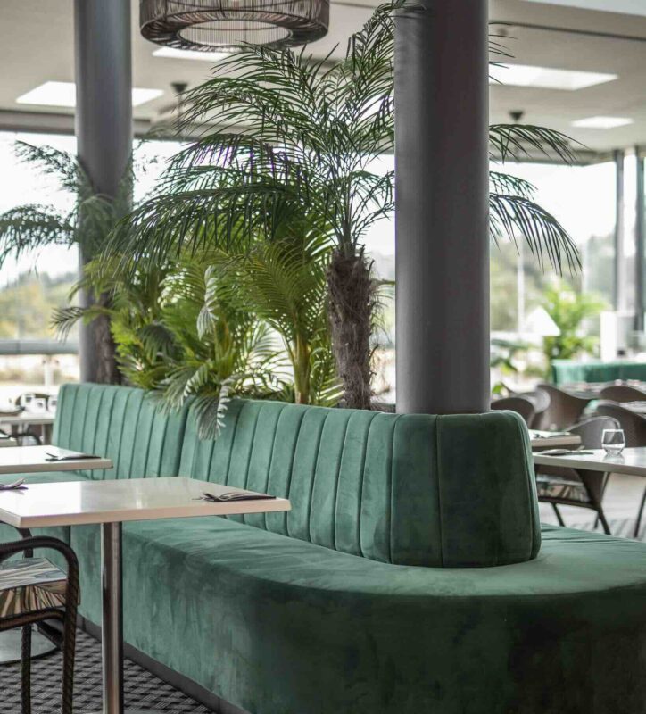 From the moment you arrive, the resort’s grand entrance sets the tone for an exceptional stay. The redesigned lobby, completed in collaboration with JRG Interiors and Studio Frost, features lush greenery, scaled artworks, and bespoke finishes, creating a welcoming and elegant first impression. The expansive golf course is captured in the lobby, through large picture windows, bringing the outside in. The combination of materials used are set to evoke memories of holidays past, with wicker and rattan paired with seashells and lush greenery for the ultimate coastal escape.