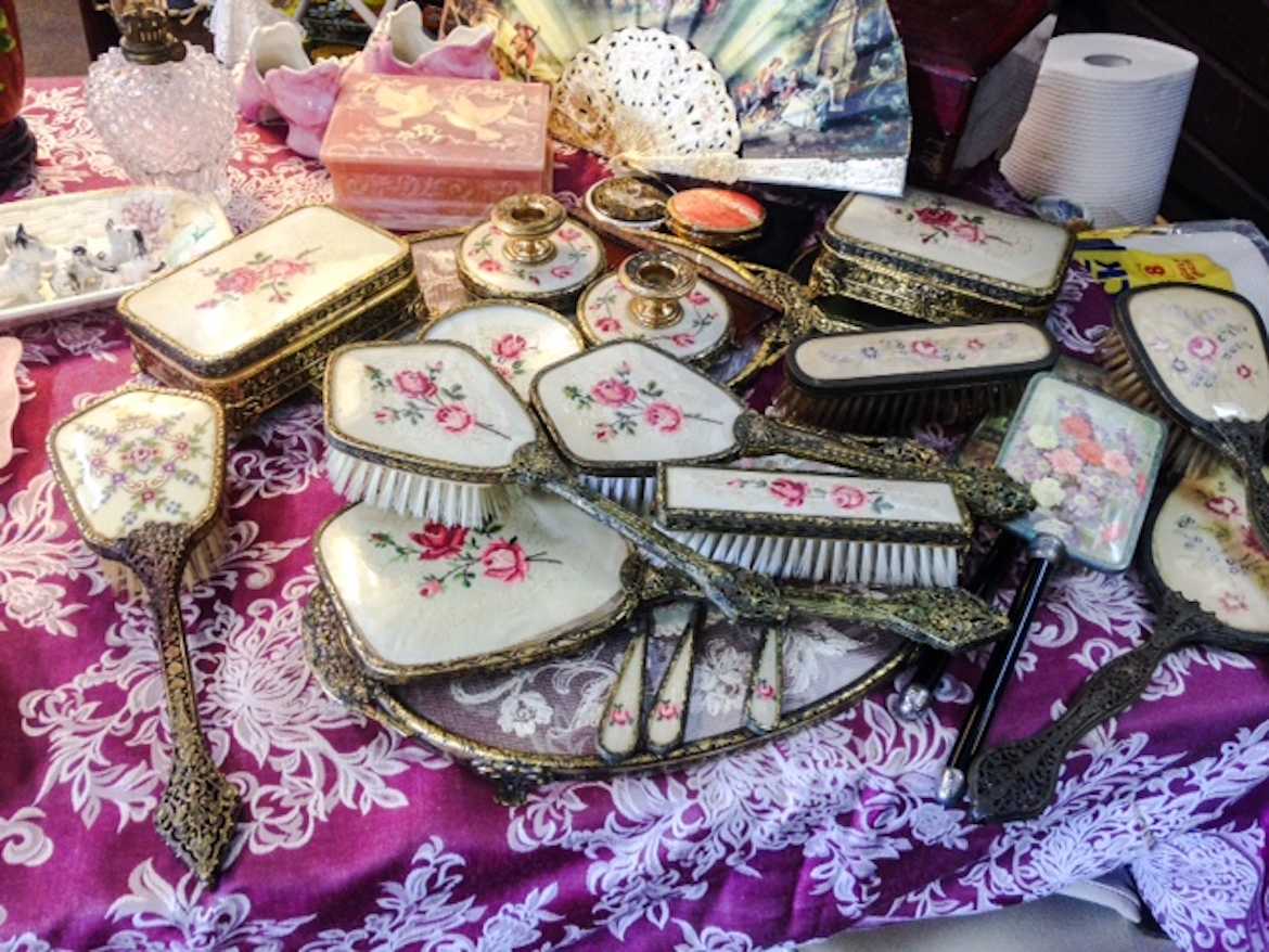 From the antique dressers and glass cabinets of grandparents, there is an endless supply of silver spoons, crystal, crockery and chocolate boxes, as well as ornate brooches and hair brushes.